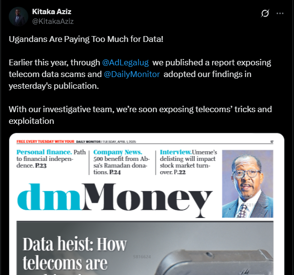 We published a report condemning telecom companies for unfair practices such as expiring data bundles and unexplained data depletion—violations of consumers’ right to internet access. Our findings were later echoed and reinforced by the Daily Monitor Newspaper, which analyzed these exploitative practices and strongly supported our position. The coverage sparked widespread backlash on X (formerly Twitter), where users voiced their frustration and demanded accountability from telecom providers.
